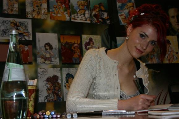 Die 20-jährige Marie Sann zeichnet seit ihrem zwölften Lebensjahr Manga und ist damit sehr erfolgreich. Dieser Stil beschert ihr mittlerweile zahlreiche Fans. Auf der Filmbörse präsentierte Sie ihre Künste und malte für alle kleinen Besucher.