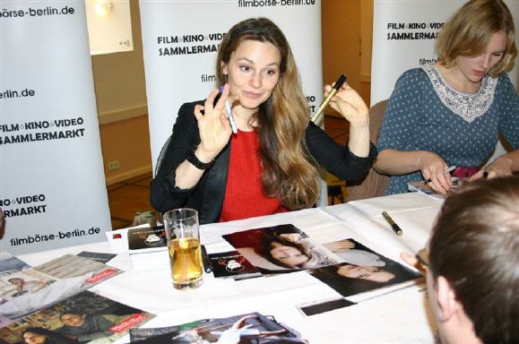 Mit einer Autogrammstunde auf der Filmbörse Berlin unterstützte Mina Tander unsere Charity-Aktion zugunsten des Kinderhospiz Sonnenhof. Mina wurde 2009 nominiert als "Beste Schauspielerin" in Maria, ihm schmeckt´s nicht für den Preis der deutschen Filmkritik. Ihre ausdrucksstarken, mehrsprachigen Darstellungen überzeugen in englisch, französisch und italienisch. Solide Ausbildungen in Schauspiel und Gesang bilden das Fundament ihrer steilen Karriere in Film und Fernsehen. 2001 stand sie für Die Wache (Folge Too Much) vor der Kamera. Es folgten Rollen in SOKO Leipzig (Folge Mädchen), SOKO Köln (Folge Das Verhör), Tatort (Folge Blutschrift) und Alarm für Cobra 11 – Die Autobahnpolizei (2010, Folge Koma), Tatort (2012, Folge Ein neues Leben). Ebenfalls genannt seien beispielhaft die Fernsehfilme Wir sind das Volk – Liebe kennt keine Grenzen (2008), Nachtschicht – Wir sind die Polizei (2009), Der Verdacht (2011), in denen Mina Tander überzeugt. Für die Kinoleinwand spielte sie z.B. in Harte Jungs, Schule (beide 2000), Oktoberfest (2005), Schwarze Schafe (2006), Maria, ihm schmeckt’s nicht! (2009), Zeiten ändern dich (2010), Männerherzen … und die ganz ganz große Liebe (2011). Ihr Kinofilm Du hast es versprochen kam am 20. Dezember 2012 in die Kinos. Und für 2013 ist die Produktion V8 – Du willst der Beste sein ebenfalls für das Kino vorgesehen. Wir meinen: Die 1979 Geborene gehört bereits zu den Besten ihrer Klasse.