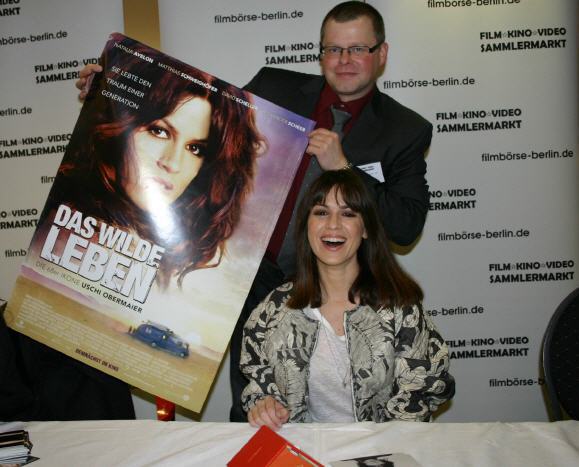 Autogramm-Alarm! Filmbörse Berlin freute sich auf die Schauspielerin und Sängerin Natalia Avelon. Die gebürtige Breslauerin verkörperte 2007 die westdeutsche 68er-Ikone Uschi Obermaier in dem Spielfilm „Das wilde Leben“. Bemerkenswert bei der idealen Besetzung für die Hauptrolle war ihre Ähnlichkeit, Körperlichkeit und der treffende Akzent mit dem ersten deutschen Rockmusik-Groupie. Den Soundtrack-Hit „Summer Wine“ sang Natalia Avelon im Duett mit Ville Valo. Der Song war 45 Wochen in den deutschen Charts, erhielt Platin. Es folgte der Deutsche Entertainment-Preis DIVA für Natalia als beste Nachwuchsschauspielerin. Eine kleine Rolle spielte sie bereits 2002 in Bully Herbigs Kinokomödie „Der Schuh des Manitu“. Sie liebt ihren Beruf. „Er macht mich glücklich“, so die Schauspielerin. Natalia unterstützte unsere Charity-Aktion. Am 1.12.13 hatten zahlreiche Fans die Chance auf ein persönliches Autogramm genutzt. Sichtlich überrascht war Natalia von manchen der vorgelegten Fotos – waren doch die Freizügigen bei den Sammlern die begehrtesten. Für eine Signatur spendeten sie gerne etwas mehr. Am Abend wurden 628,- Euro für das Kinderhospiz Sonnenhof gezählt. Dafür ein großes Dankeschön!