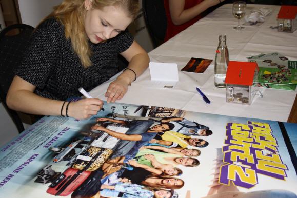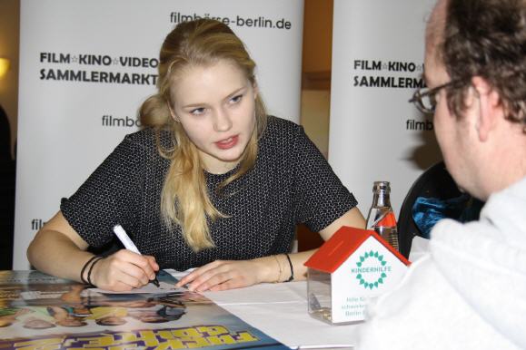 Sie war ein wenig nervös an diesem Nikolaustag. Ihr kennt sie als quirlige Familientochter Clara aus der Telekom-TV-Kampagne. Zeitnah startete Eva Nürnberg auch als Kino-Schauspielerin durch. Für die Fortsetzung der Erfolgskomödie Fack ju Göhte (über 7 Mio. Zuschauer) schlüpfte sie als 20-jährige in die Rolle einer Schülerin an der Seite von Elyas M’Barek. Bislang hatte sie TV-Rollen im Großstadtrevier, bei Notruf Hafenkante und im Musikvideo Aschenflug von Popsänger Adel Tawil. Nun ist Fack ju Göhte 2 der zweiterfolgreichste deutsche Film aller Zeiten! Mit der Autogrammstunde von Eva Nürnberg – übrigens ihre allererste – konnte das Spendenergebnis auf 414,39 Euro gebracht werden. Die Summe wurde der KINDERHILFE e.V. überbracht, die wiederum ihren großen Dank an alle Spender zurücksendet.