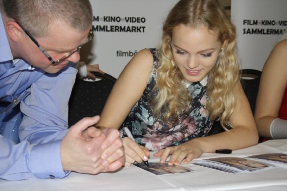 Eine ambitionierte Jungschauspielerin stellte sich mit süßen 17 Jahren auf der Filmbörse Berlin vor: Die attraktive Lilly Joan Gutzeit kennt Ihr vielleicht aus dem RTL-Dauerläufer GZSZ. Für die deutsche Romcom Dating Alarm (Sat.1) unter der Regie von Holger Haase wurde sie in diesem Jahr als die junge Hannah besetzt. Lilly besuchte die Schauspielschule Young Talents und hatte ein Schauspielcoaching bei Heike Hanold-Lynch. Ihr hübsches Gesicht erschien anschließend in mehreren Werbekampagnen, darunter Shootings und Spots für zalando und Ikea. Schauspielpraxis erfährt die tanzinteressierte Berlinerin in Rollen für Tatort (Das Erste), Ein starkes Team (ZDF), Spotlight (RTL) sowie Anna und die Liebe (Sat.1). Für eine Charity-Autogrammstunde zu Gunsten der KINDERHILFE e.V. und ein kurzes Gespräch konntet Ihr Lilly Joan Gutzeit auf der 69. Filmbörse Berlin treffen. Und es kamen stolze 646,50 Euro für die gute Sache zusammen.