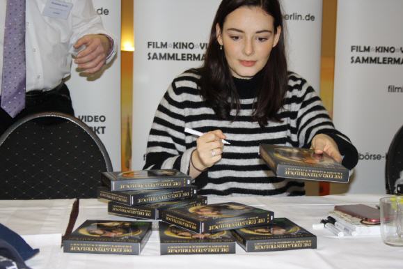 Wenn Prominente aus Film und Fernsehen zur Charity-Aktion erwartet werden, dann ist die Spannung groß und die Besucherzahl noch größer. Veranstalter André Zachau läd seit vielen Jahren regelmäßig in der Vorweihnachtszeit aktuelle Publikumslieblinge aus dem Wirkungskreis des Leinwand- und TV-Schaffens ein. Zahlreiche junge Darstellerinen und Darsteller sowie namhafte Schauspielerinnen und Schauspieler gaben bei ihm Autogrammstunden für den karitativen Zweck. Für die 74. Filmbörse Berlin sagten Hanna Binke, Maria Ehrich und Marla Menn gern zu. Während der über neunzig Minuten dauernden Autogramm-"stunde" wurden den geduldig Schlange stehenden Fans Widmungen auf Fotopostkarten, Kinopostern, Filmbüchern, DVD-Boxen, CDs und anderen teils extra von den Fans mitgebrachten Sammlerstücken geschrieben. Für jeden Artikel lag ein passender Stift zur Hand. Gespendet wurde auch sehr gern für ein exklusives Foto, bei dem man dicht neben seinem Star stand. Wo sonst ist das möglich? Der Spaß ging weiter beim Foto-Shooting mit Cosplayern des Star-Wars-Fandoms. Im Ergebnis wurden insgesamt 810,74 Euro an die KINDERHILFE e.V. übergeben. Die spendenfreudigen Besucher wünschen sich noch weitere ähnliche Aktionen.