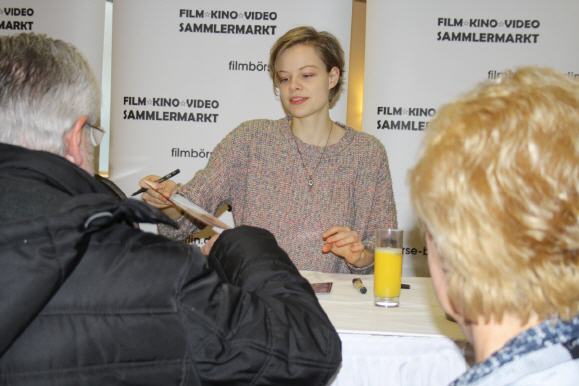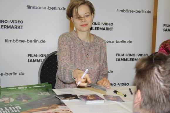 Allein im Jahr 2018 war Jungschauspielerin Emma Bading in drei Kinofilmen zu sehen, davon mit zwei Hauptrollen: In Grüner wird's nicht, sagte der Gärtner und flog davonals Philomena neben Elmar Wepper, als bös-magische Lilith im verfilmten Jugendbuch Meine teuflisch gute Freundinund in dem Drama In My Room (R: Ulrich Köhler). Für Punkt 12 Uhr hatte sich Emma für die Autogrammstunde angekündigt. Sie reiste selbst an. Die zwanzigjährige Wahlberlinerin kommt ursprünglich aus Düsseldorf. Ausgezeichnet wurde ihre auffällige Spielfreudigkeit unter anderem mit Nominierungen 2015 und 2017 zum Deutschen Förderpreis Schauspiel als beste Nachwuchsdarstellerin und der Nominierung 2018 zum Deutschen Schauspielpreis – Nachwuchs. Mehrere Autogrammkartenmotive hatte sie heute im Gepäck. Gefragt waren alle. Der Filmverleih schickte für die Charity-Aktion Kinoposter zu den Filmen Grüner wird's nicht und Meine teuflisch gute Freundin. Für Hilfe für Kinder kann sich Emma Bading sofort begeistern. Daher unterstützte sie unsere jährliche Charity-Aktion zugunsten der KINDERHILFE e.V.gerne mit einer Autogrammstunde und motivierte die Spendenfreudigkeit der Besucher. Der Erlös zählte 902,05 Euro.